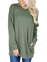 These loose-fitting blouses are made of cotton blend and polyester. It is a stretchy fabric, lightweight, soft and breathable. Featured with a crew neck, long sleeves, and plain color style, these casual loose blouses with two pockets are perfect to show your femininity.