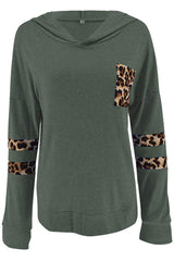 Features: rounded neckline with hood detail, long sleeves, leopard pocket, loose-fitting pullover with leopard detail.