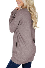 These loose-fitting blouses are made of cotton blend and polyester. It is a stretchy fabric, lightweight, soft and breathable. Featured with a crew neck, long sleeves, and plain color style, these casual loose blouses with two pockets are perfect to show your femininity.
