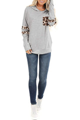 Features: rounded neckline with hood detail, long sleeves, leopard pocket, loose-fitting pullover with leopard detail.