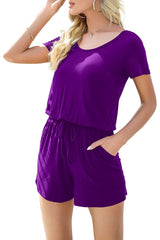 Features with elastic waist, solid causal Color, and two Side pockets, these women's rompers with plain color design would make you confident.