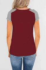 Bingerlily Wine Red Short Sleeve Stripe Tops